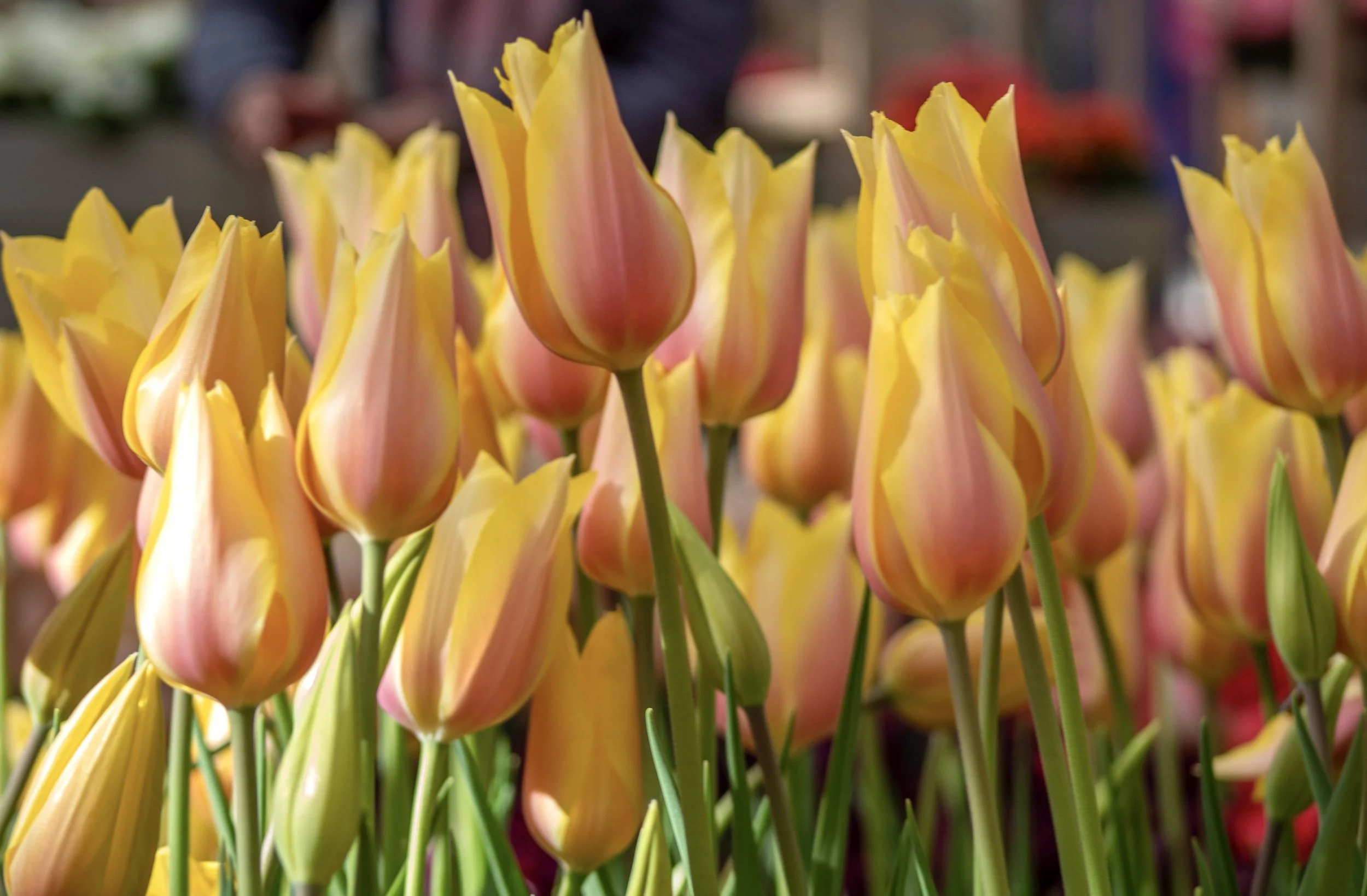 Its long spring season with cool nights makes the Netherlands the perfect country for tulip growing. The soil in the polders is continuously drained, creating perfect growing conditions for tulip bulbs transforming the topography into a beautiful patchwork quilt of flowers.